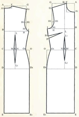 Данная конструкция разработана для платья из трикотажа или другого эластичного материала. Прибавки для изделий из эластичных материалов обычно имеют отрицательное значение. Построение спинки Строим прямой угол из точки А. Подробнее...